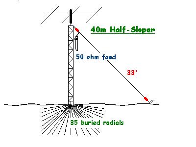 With that, I set myself a goal of trying to work them all. Although my 40m half-sloper was well matched and had proven to be a good performer in the 40m pileups, it only had four buried radials. The first thing I did was to bury another 30 radials around the base of the 48' tower, hoping to lower my ground losses as much as possible. With just one-third of a watt, there was no power to waste.