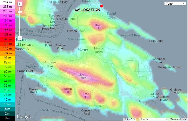 My first task will be to build a 4" optical tube receiver or another boxed Fresnel-lens type for portable operation, here on Mayne Island, to see if I can scatter a signal to the other side of the island and detect it while operating in the field. There are a couple of nearly 600' peaks on Mayne which should provide a good shielding effect for testing ... maybe too good. Time will tell.