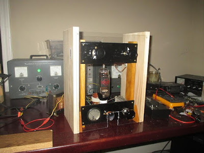 Andy's Tri-Tet runs at 400V on the plate, unlike the original design that called for 1kV on the plate and bare tank coil. Now that's really operating on the scary edge! At 8W output on 80 and 40, there's plenty of power to work with.