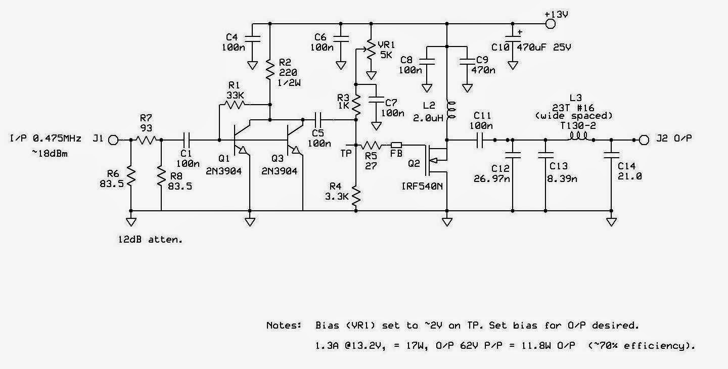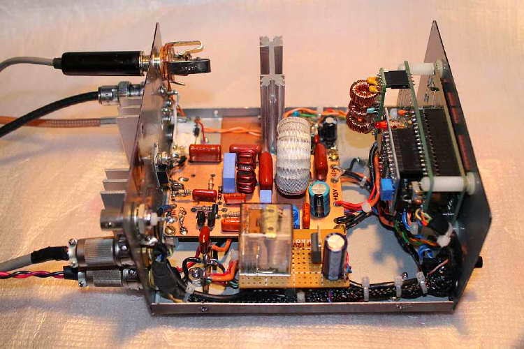Jack has tailored his version for our new (to Canadian amateurs) 630m band but has also added a versatile MOSFET linear amplifier of his own design that runs on 12VDC. Using an inexpensive IRF540 switching FET, Jack can run up to 30W of output on 630m but normally runs at the 5-10W level on 475 kHz. Most of Jack's homebrew gear looks as if it just came off the Hewlett-Packard assembly line and his latest project is no exception.