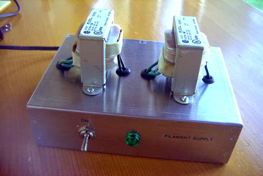 As well, since the type '10' uses a directly-heated cathode, if I wish to let the oscillator run while I key the amplifier, a separate filament supply will be required for each tube. With this in mind, I've got the ball rolling this week with the construction of a dedicated '29 rig filament supply. The supply uses two center-tapped 5V transformers with their secondaries in series and brought out to the back panel. This will allow me to use tubes with 2.5V, 5V, 7.5V and 10V filaments...up to 3A.