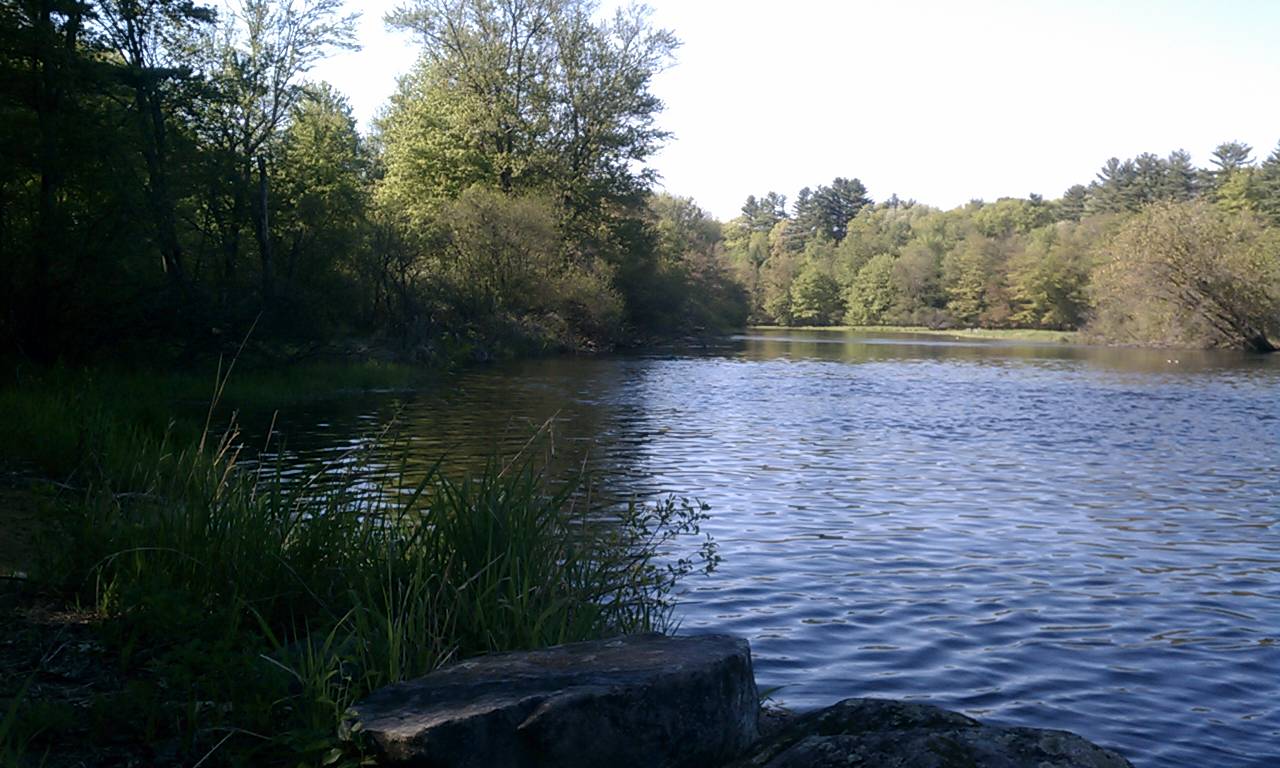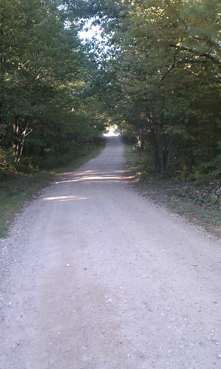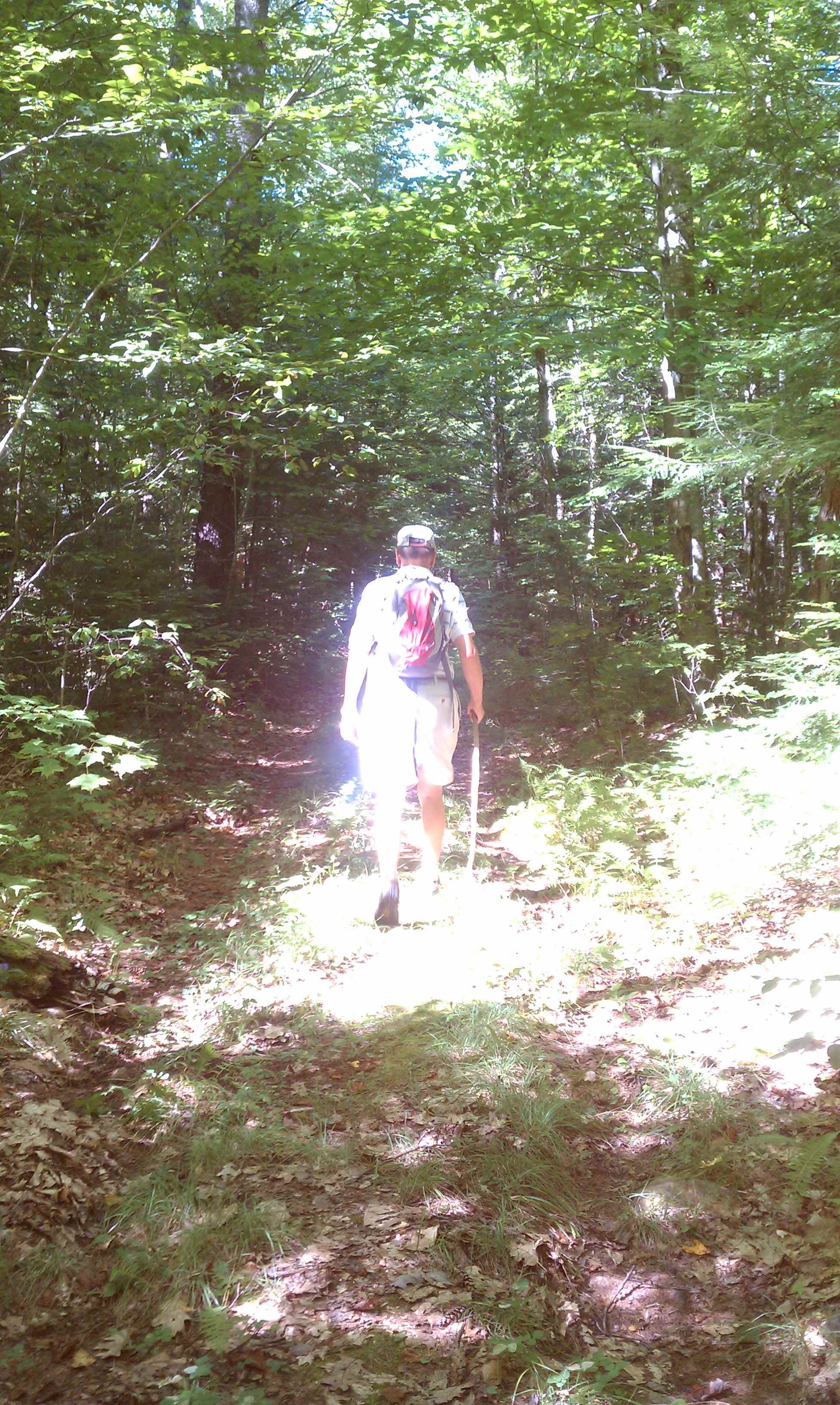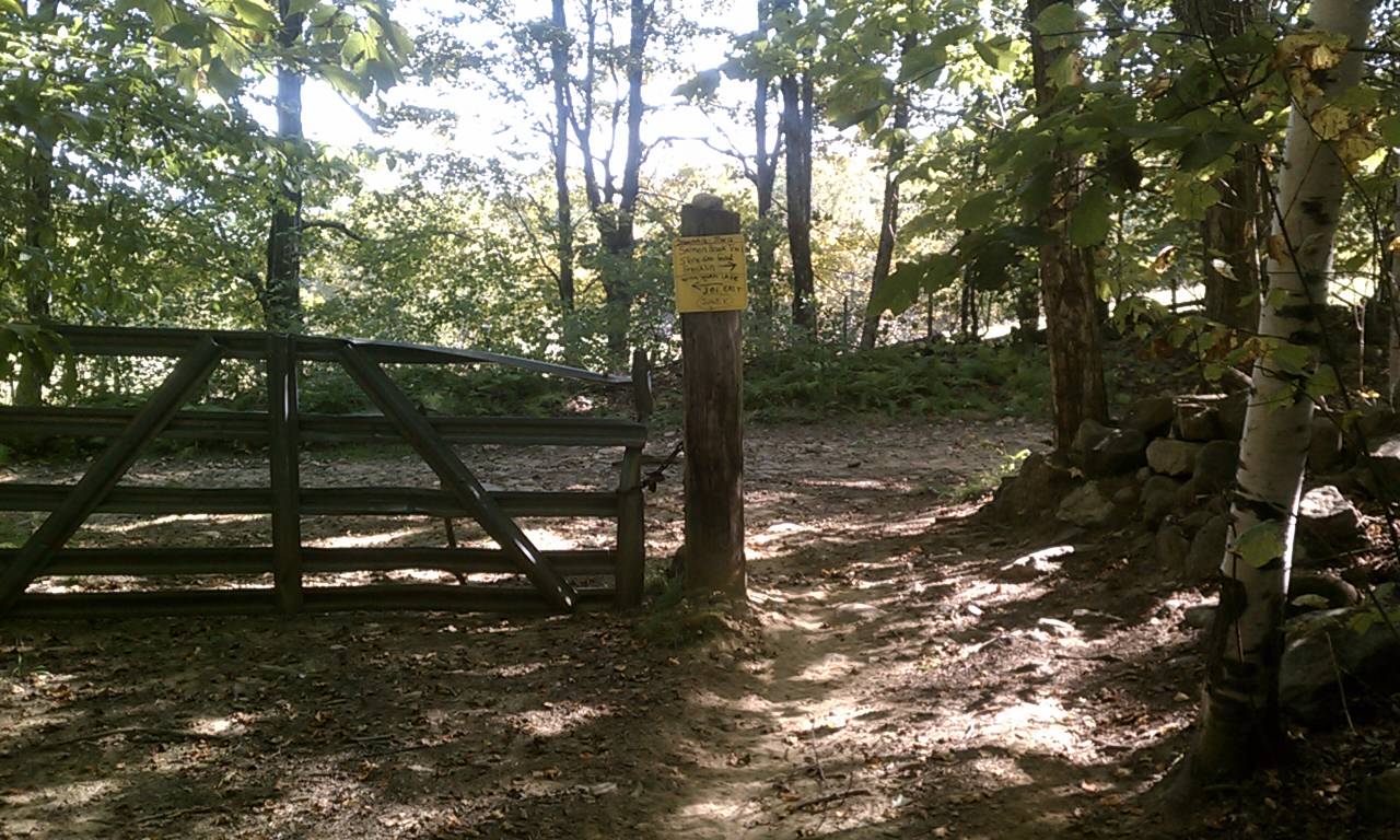 The trail goes through the woods and over a pretty high elevation and down toward Hunkins Pond where it meets an old range road at a gate.
