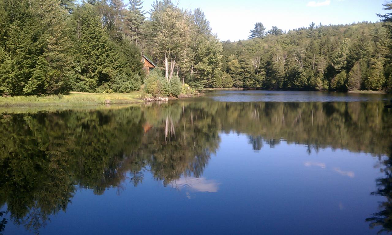 The cabin and the pond are about a mile and a half from the trail-head. The place is dazzling at first sight.