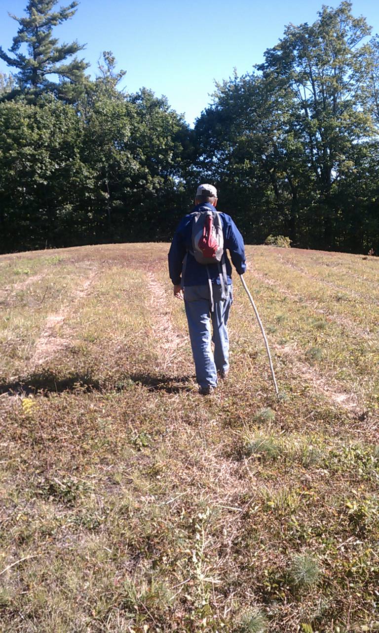 We parked the car and walked north on the Rufus Colby Road. The town only maintains about a half mile of it, then it turns into an impassable woods road. After another few hundred yards, we headed east through the woods on an abandoned farm lane. The woods open into a small field after a few minutes’ walk.