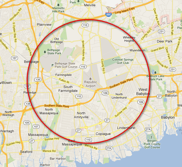 Friday night we had a hunt. The box was to be hidden within 3.5 miles from the Republic Airport in Farmingdale, NY. The box itself is managed by my Elmer, WA2CDL. It’s an old Radio Shack HTX-202, controlled by a custom PIC controller, powered by an external rechargeable battery, all contained in a surplus ammo box. We set out in our new Kia Soul, with me in the back seat. I folded half the back seat so as to have a kind of desk next to me. There I had the TR-9000 and a Dell laptop with the RTL-SDR setup, and Google Maps. Internet was provided by a hotspot on my T-Mobile HD7. We waited.