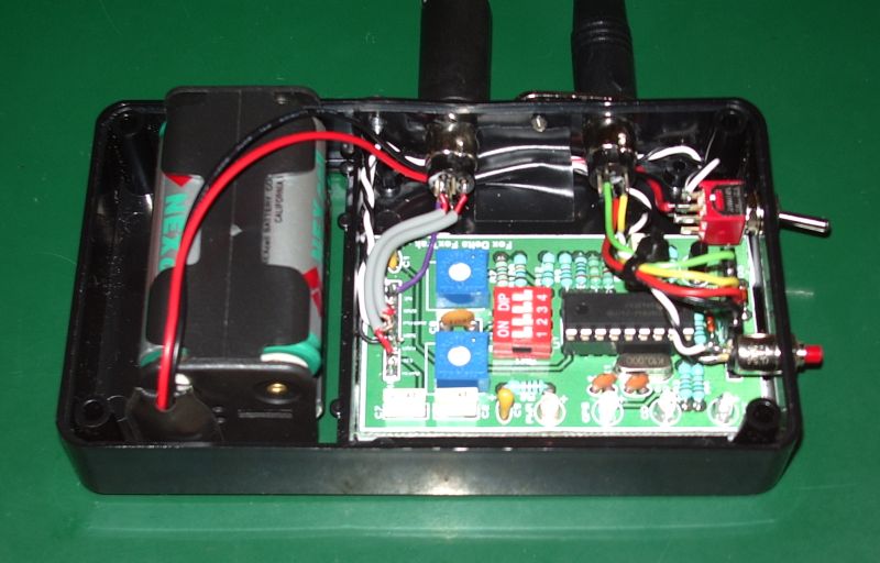 My FoxTrak APRS tracker board is now installed in a plastic case, together with 4 x AA NiMH cells which provide near enough 5V to power both the tracker and the GPS. Two mini-DIN sockets on the side of the case allow connection to a PS/2 GPS or PC for configuration, and to the radio. Now I just have to make up interface cables to my radios and install the top half of the case after drilling it and installing the charger socket for the battery.