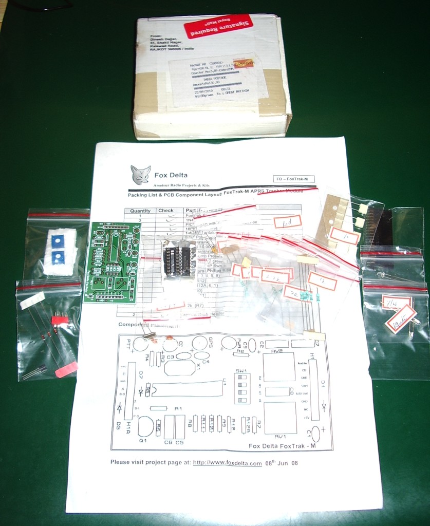 This morning a small package arrived from India. It is a FoxTrak-M APRS Tracker Module kit from Fox Delta.