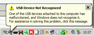 My computer’s on-board soundcard is in use by my K3 so there was no point in trying that. But I did have another slightly better USB audio dongle being used for PC sound, so I decided to swap them over. I removed the cheaper dongle in order to better access the audio sockets and when I replaced it I received a message from Windows that “One of the USB devices attached to the computer has malfunctioned” and it disappeared from the system.