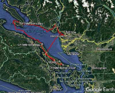 Crewed by Mark (VA7MM) and YL May (VE7MAY), Toby (VE7CNF) and XYL Nancy, the 31' Benateu recently completed a 14-day circumnavigation of Georgia Strait's Gulf Islands. This is a yearly adventure that has been successfully completed for the past few summers and looks as though it may now be an annual tradition.