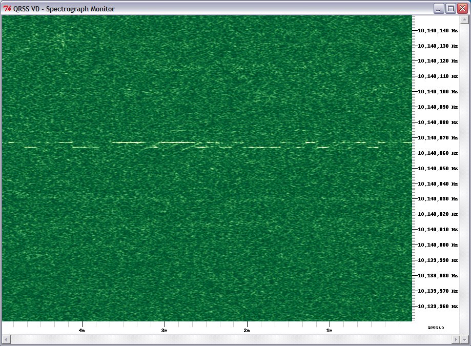 [If you are interested in receiving WSPR as well, you could tune the radio to 10.138.700 and enter low and high values of 1250 and 1450Hz. Then you could run WSPR and QRSS VD on 30m simultaneously.]
