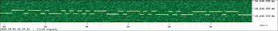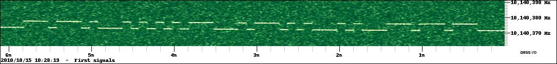What’s nice about the QRSS VD software is that you don’t have to watch the output in real time to capture signals and it is simple to produce nicely formatted records of signals received like the one above. Every few minutes the spectrograph dumps a bitmap file in the program’s Output folder. When you want to see what you caught you start up the QRSS VD Viewer, select a group of bitmaps to view and it will stitch them into a seamless time continuum. You can then scroll through from start to finish looking for the traces of QRSS signals.