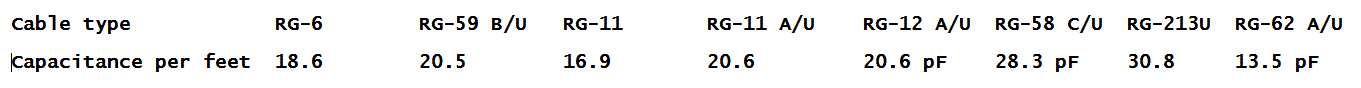 A fixed capacitor can be created out of coaxial cable if you intend to operate on one frequency and a table of approximate capacitances for different types of coax is included here, click to enlarge the table below.