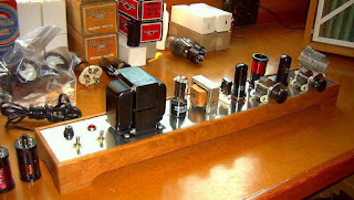 A couple of days later, I returned to the bench to take some blog photos of the rig delivering power into the wattmeter. When I turned the 'stby' switch to 'transmit', the plate current suddenly shot up (with no keying) and the meter on my Variac supply indicated over an amp being drawn by the power transformer ... all with zero output and no crystal plugged-in!