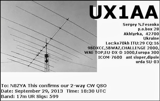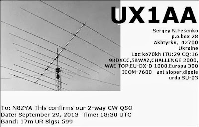 I’m also very proud of a nice contact, on the 29th of September, with UX1AA in the Ukraine ! This was a great signal on the 17 meter band. In addition to a nice card displayed on QRZ.com