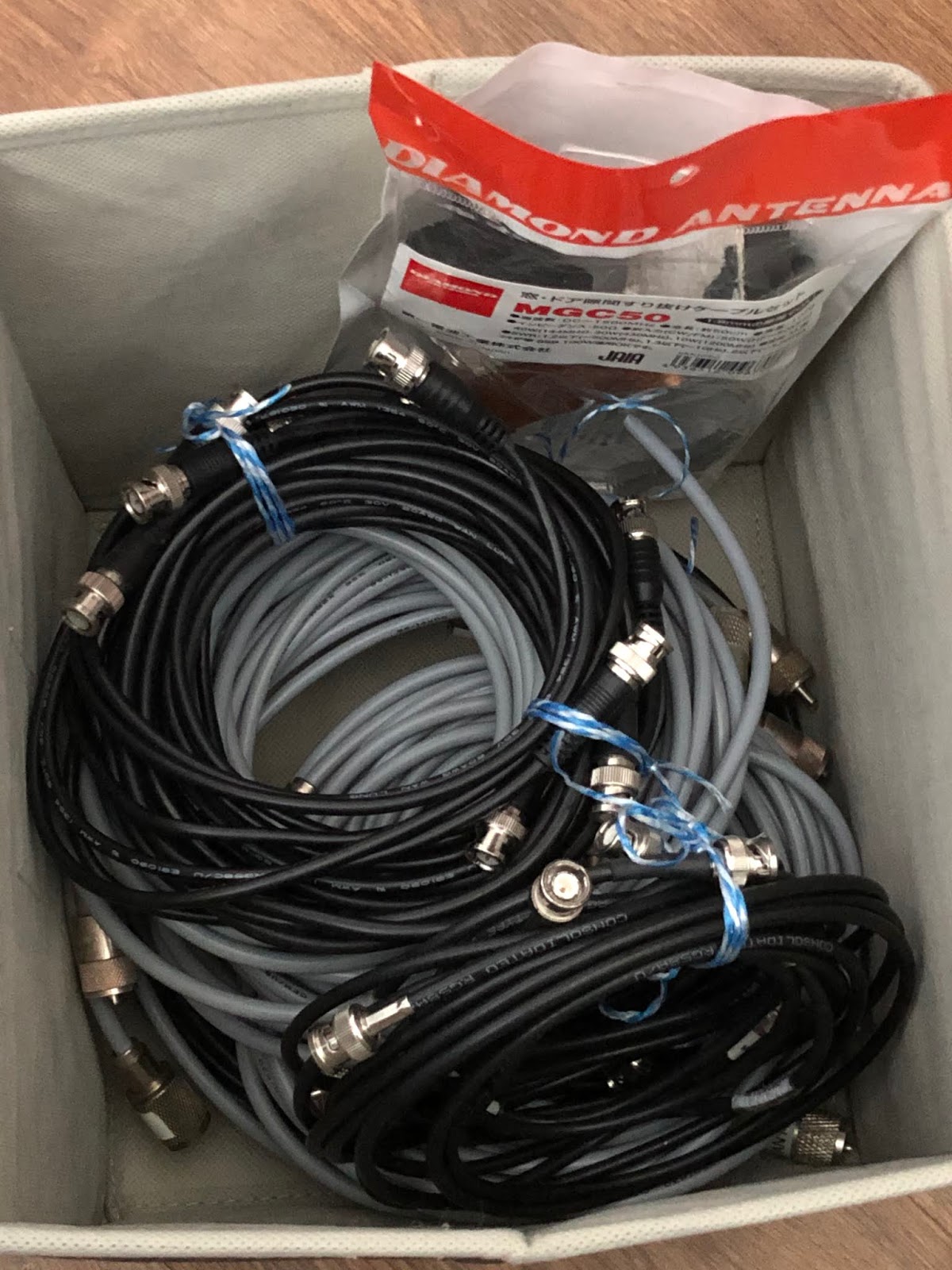 time at our place with really no function......now there is a function for them. As I was unpacking my gear I was shocked to see how many cables I had. I sorted them into a cubby that had just coax cable and another with audio cables and finally a cubby with all my meters, solder station, solder and any item that fell into the category of repair and test. Today I was able to run the coax cable from my Endfed antenna position into the home. Tomorrow I will be (weather permitting) getting the