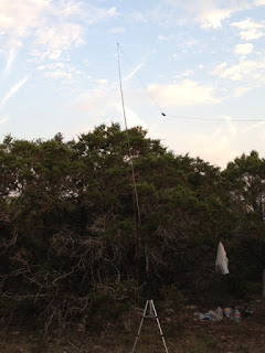 I would also say the radio set up worked as well. My main goal was to test the new 13' telescoping pole that I bought from SOTA Beams. I like this pole because it is much easier to pack in a backpack and it fits easily into a suitcase. Of course it's only 13'. I set it up on the $10 tripod that I use with my AlexLoop, that gives it another 4 feet or so. Both the telescoping pole and small tripod slide easily into the slot behind the sidepockets on most backpacks.