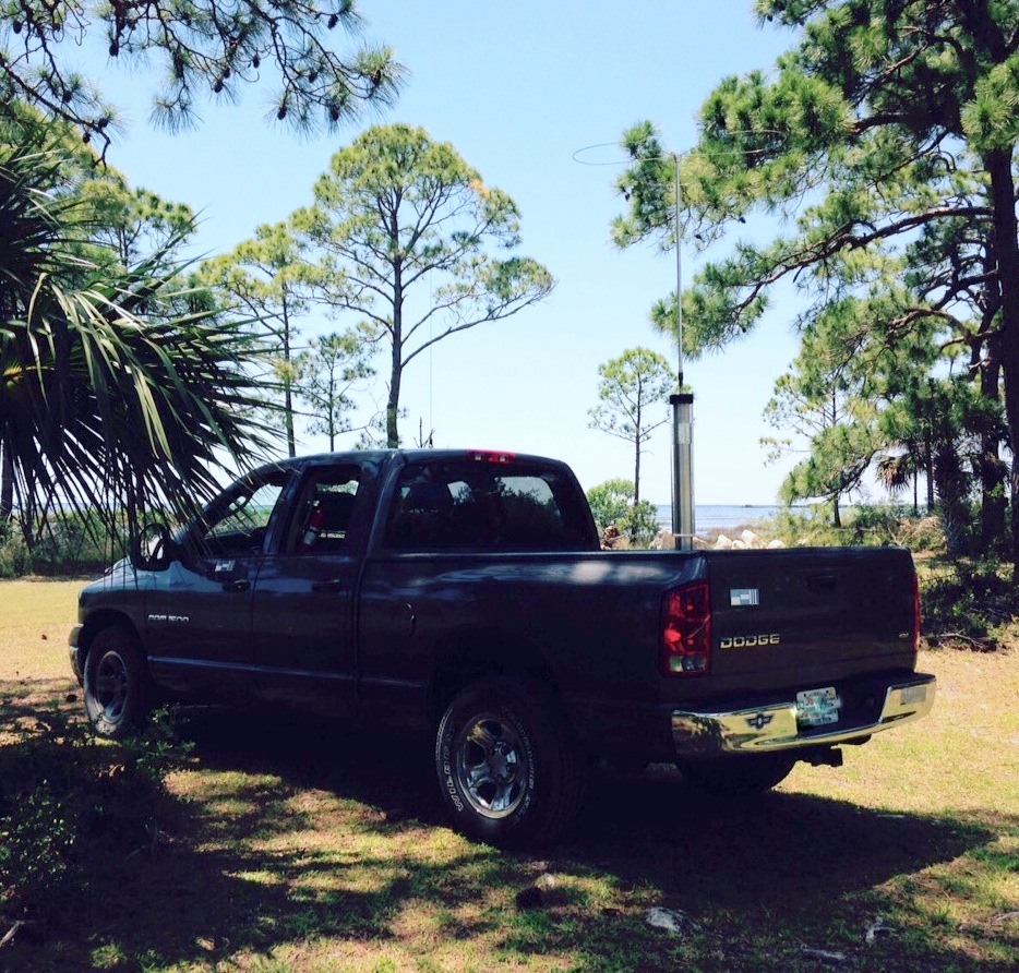The Scorpion Antenna is mounted in a good spot in the rear of my pickup truck bed. Seen here at Hagen’s Cove in Perry Florida on the Gulf of Mexico in the ‘big bend area’!