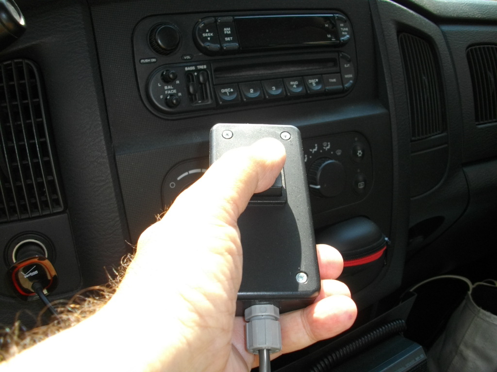 This photo shows the remote switch. It is hand held, and easily put away after the antenna is tuned.