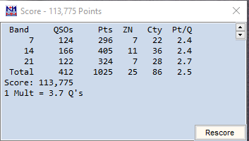- My highest number of contacts ever in a contest of 412 and my best score as well of 113,775.