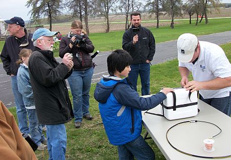 As you can tell, Marshall W0OTM is an extremely positive guy and one could genuinely tell he enjoyed the involvement of the children. My kids, with the important task of keeping the payload boxes from blowing away in the 25 MPH (with gusts over 30) Iowa nasty spring winds we thrilled to have the task.