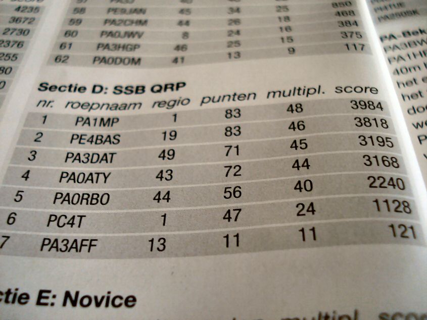 The results of the PA-beker contest last year are published. I became 2nd again, just 2 multipliers short. Fellow blogger Paul PH0TO (PC4T last year) became 6th, not even the last place Paul. I will do my best to win this years QRP-SSB section. It’s just a matter of persistance I think…
