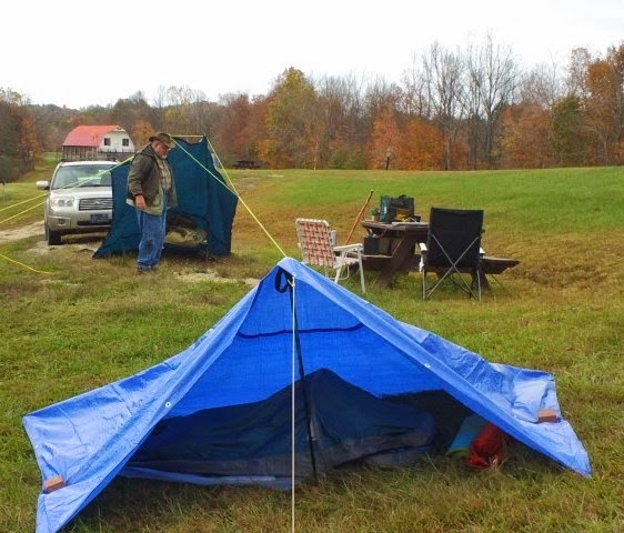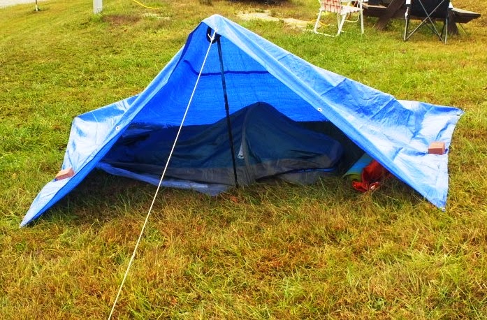 As with the spirit of QRP and doing “more with less”; I decided to take W2LJ’s advice and downsize my radio camping gear. The process started soon after the return trip from Elkins WV and the 4,000 ft mountain top. My 15 year old tent was showing a lot of wear and tear. I was afraid a really cold rain might leave me very uncomfortable and possibly even in danger of hypothermia during the upcoming winter months. We both decided to downsize and use simple tarpaulins and bivy sacks for our dwellings.