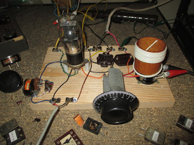 Michael, W3TS, managed to squeeze enough RF from his one-tube 6AG7 crystal oscillator to be heard and worked here on both 40 and 80m, with a respectable 559 on 40 and 569 on 80!