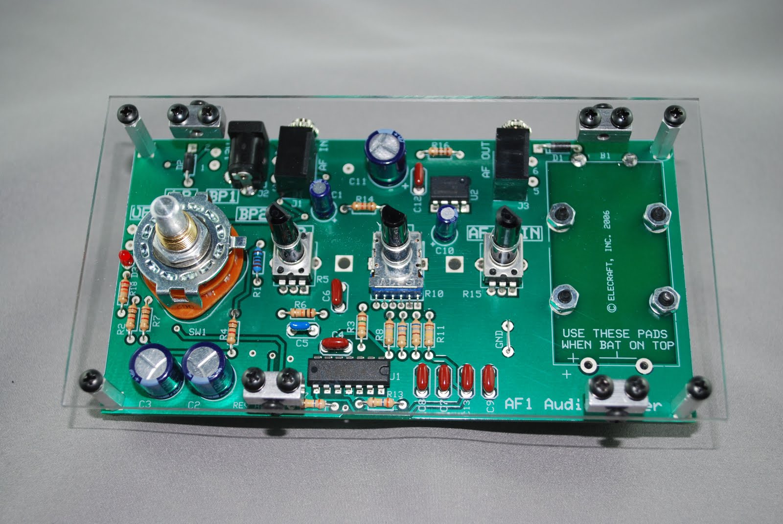 AF1 for it to fit properly into the Lexan case. The 9 volt battery had to be mounted on the underside of the circuit board. That went very smoothly as Elecraft has provided for this and it is well laid out on the PCB.