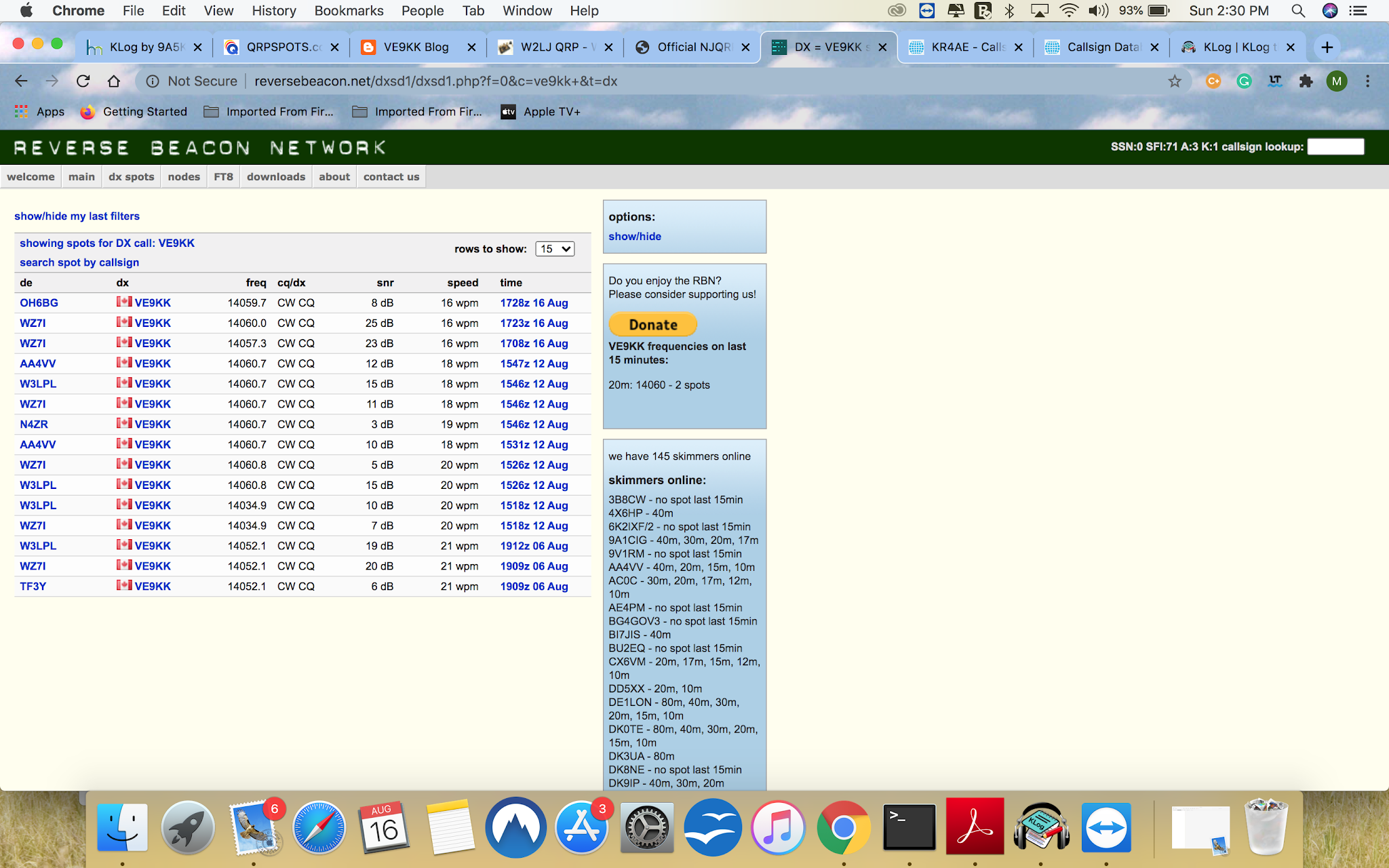 To make a long story short I was on for over 21/2 hours and I did hear some skeeter station but only at the noise floor and they were soon gone. I had my Mac laptop with me and I was checking and found some spots but I was just not able to hear ANYTHING! I did check the Reverse Beacon Network to see if my QRP CQ was being heard and it was all the way in Finland as OH6GB heard my signal.