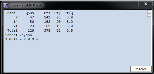 I was not able to snag any rare DX and in fact, I really only heard manly Europe, nothing from the middle east or Asia this year. During the late afternoon on 15m, I had Central and South America open up and I was able to get some contacts from there in the log. I only made 126 QSO's I was in and out of the chair and I really have to get to the point in my CW career to feel comfortable calling CW contest and stop the search and pounce only routine. The only Murphy moment I had was when my Bluetooth keyboard's rechargeable battery when dead. I had to hunt down my USB keyboard before continuing in the contest. The lesson learned here is to set the Bluetooth aside and use the USB keyboard for contesting. The next contests in my schedule are the North and South Carolina QSO party contests the first weekend in March.