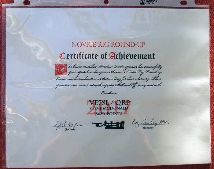 I eventually ended up with 68 contacts, but at 5W, it was a challenge ... most of my many 'CQ NRR' offerings were unanswered, so it was mostly a 'search and pounce' operation. With this in mind, I soon decided that next time, I'll get the 2NT ready to go and hopefully, with a little more oomph, can attract some callers.