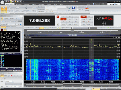 As you might expect from the author of Ham Radio Deluxe, SDR-Radio.com has built-in support for decoding digital modes. Unfortunately I haven’t managed to work out yet how to get the digital decoder waterfall to be a reasonable size: At the moment it’s a small window on the left hand side which is trying to display 15kHz worth of spectrum and although I’m hearing PSK31 I can’t find a trace to click on! I’m also still trying to discover if there is a PSK Browser in the program that sends reports to the PSK Reporter reverse beacon site. Hopefully someone will enlighten me.