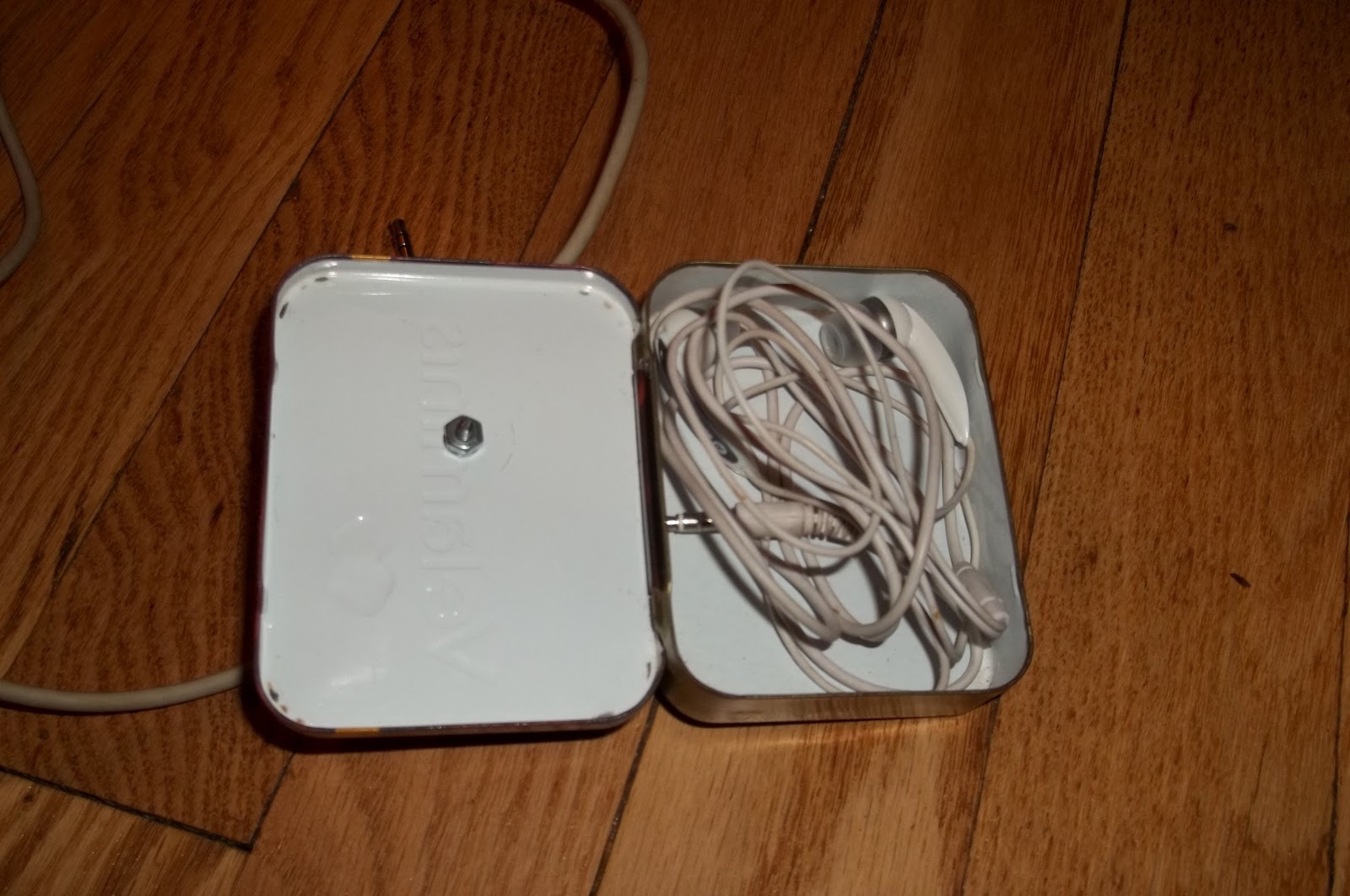 I carry my ear buds in an old Velamints tin. It occurred to me that the tin could do double duty – carry my ear buds AND serve as a base for my paddles.
