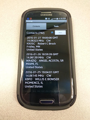 HamLog is great! It's easy to use and has a lot of features. If I'm not in a pileup situation (ragchew mode, or even causal sprint operation), it's easy enough for me to type in my contacts. In a hectic pileup situation (think activating NPOTA or the Skeeter Hunt), where things are happening fast and furious, I get flustered a bit. I can start out logging on the cell phone, but inevitably, I end up getting fumble-fingered and have to resort to old school - paper and pencil. If I'm near a wi-fi source (I have a very limited monthly data allowance, so my data connection is always off), it will even look up the names and QTHs of the operators that I am currently working. I can easily export the log to an ADIF file, so that I can add my portable ops contacts to my main log on Log4OM.