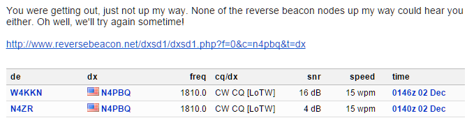 I tossed my mighty 5 watts call out at 1810 kHz not expecting much...