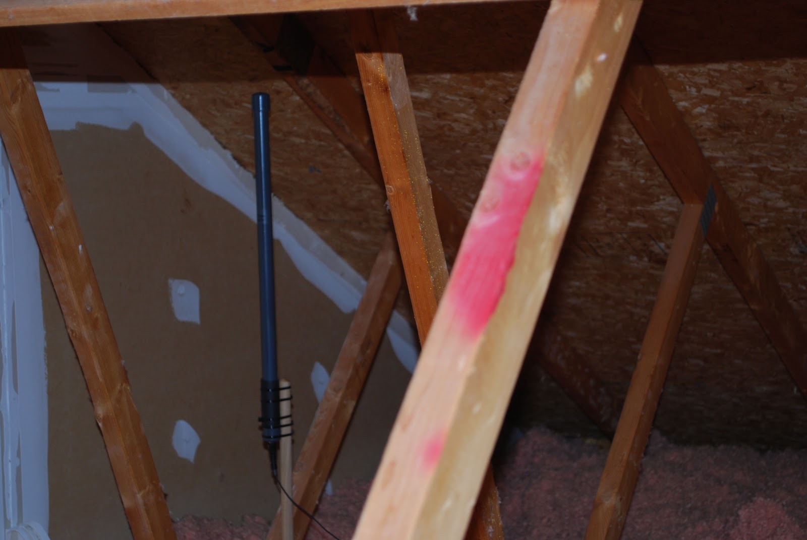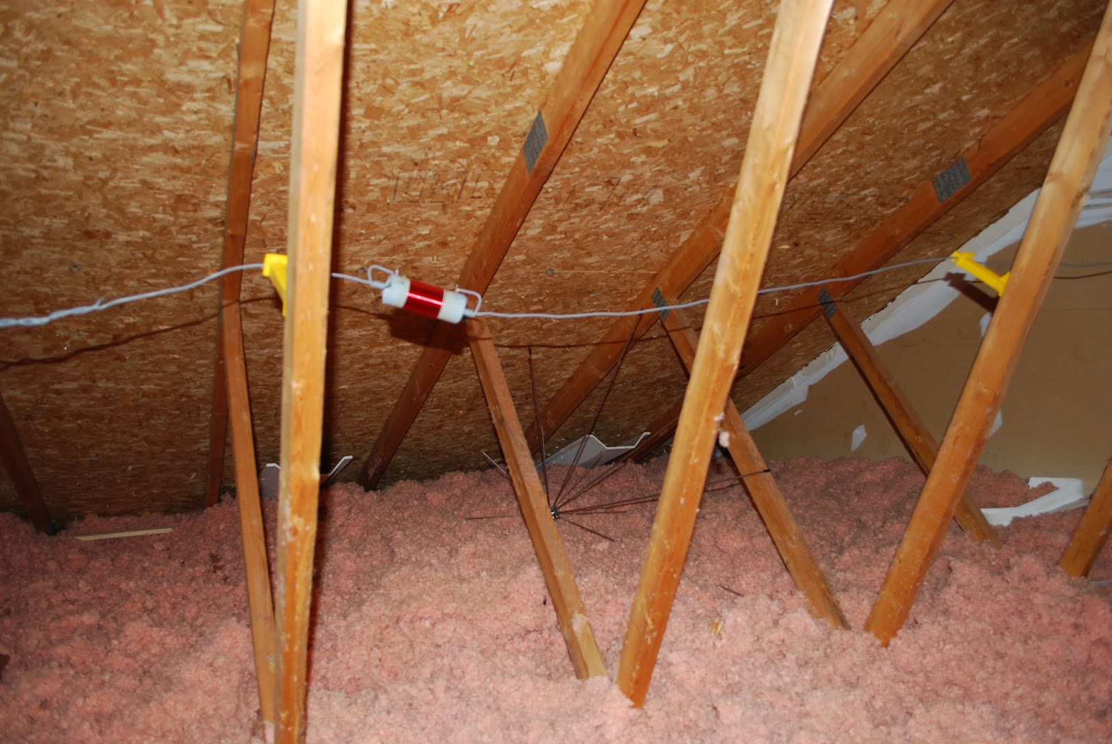 Being in an antenna restricted community.....now when I say restricted it is in the most extreme way. We have what I call the "condo cops" they do a walk around at least once a month to make sure all is well. If I ever even had a temporary antenna up I would be under their watchful eye!! In a way it's kinda comical it's like these folks on the board have nothing else better to do with their time.....maybe they should get a hobby. Anyway it was time for me to head up to the attic to check on the antenna farm. It has been cool these last few days which makes the attic a bit more bare-able. I have done some reading and it seems the attics in the States have A.C. units, furnaces and even plumbing. Up this way it's great for antennas as there is nothing other than electrical wiring (which can have it's own challenges). I always like to see how the
