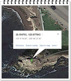 | Satellite perspective of our operating latitude and longitude on rocky outcropping. |
