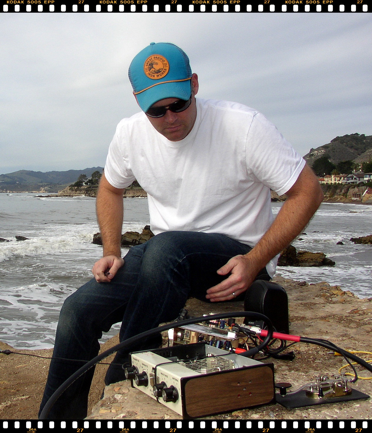 | Ryan, K6RQT getting ready to fire up his homebrew 1 watt, crystal controlled transceiver using matched long wire. |