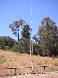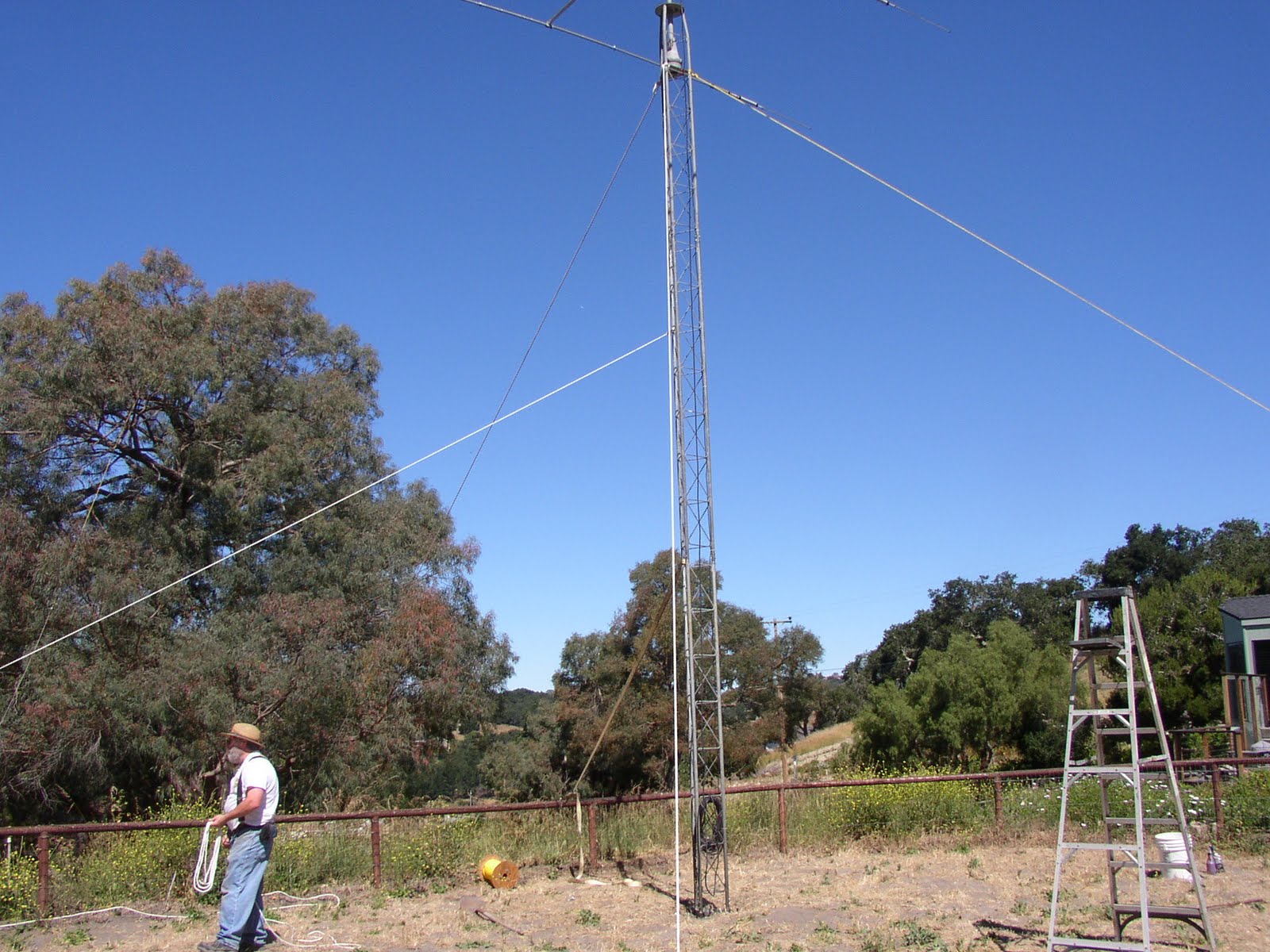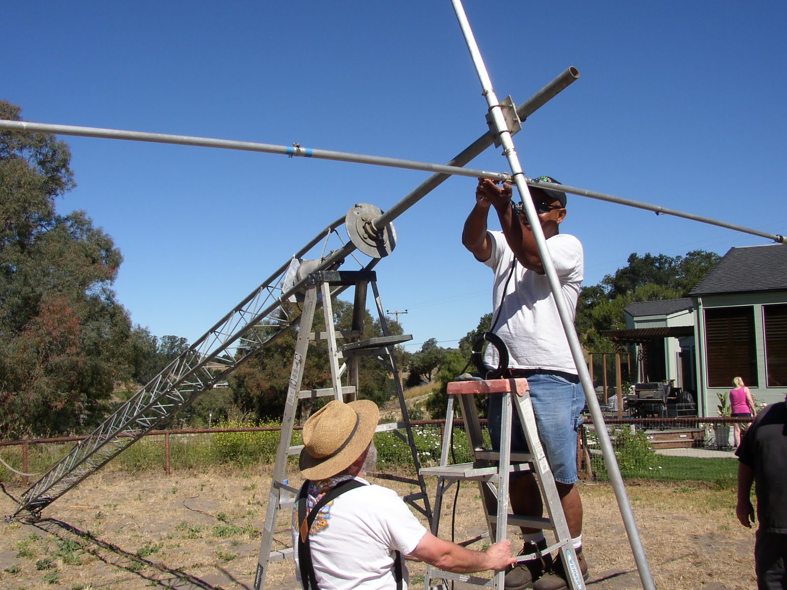 Photograph 10 taken of Emerito, N6ETO making an adjustment to the tri-bander driven element prior to hoisting operations.