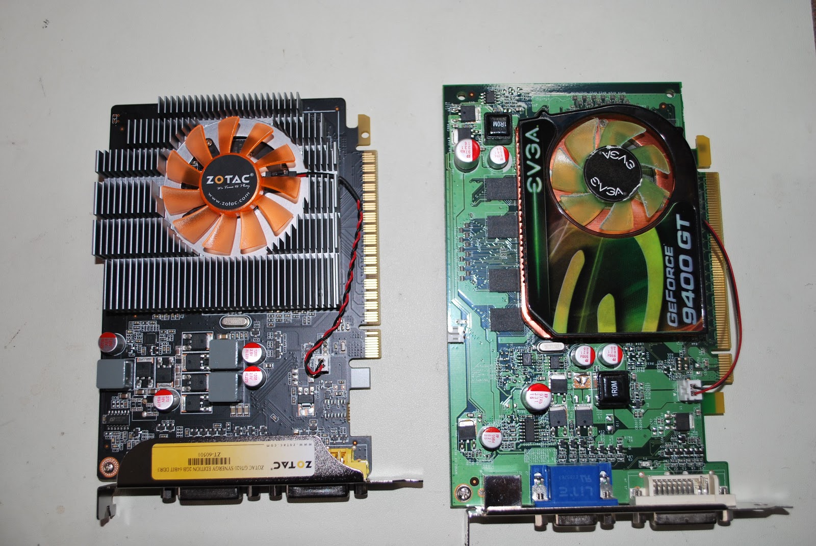 one DVI and one VGA output port. It was the VGA port that was not allowing my new monitor to shine with all it's resolution. I ended up purchasing the Zotac Geforce GT 620 video card. This has two DVI outputs and as with the other care supports dual monitors. A small part of the day today was spend