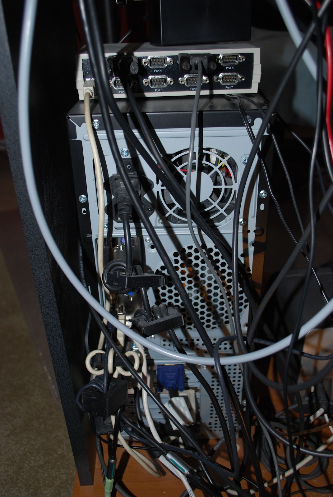 I do have a laptop that I could use. It is a nice wide-screen Dell running Windows 7, purchased for work about 3 years ago but now little used as I have given up most of the things I used to do. The trouble with that idea is that the laptop doesn’t have the 4 real serial ports and 6 USB ports that the shack PC has, all of which are used.