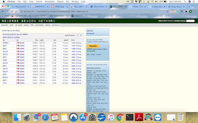 To make a long story short I was on for over 21/2 hours and I did hear some skeeter station but only at the noise floor and they were soon gone. I had my Mac laptop with me and I was checking and found some spots but I was just not able to hear ANYTHING! I did check the Reverse Beacon Network to see if my QRP CQ was being heard and it was all the way in Finland as OH6GB heard my signal.