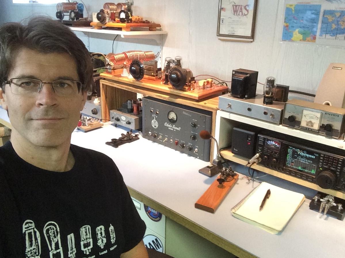 Scott, KA9P's 80m T-60 signal sounded as sweet as it looks in his 2018 setup, paired with his Heathkit HR-10B inhaler.