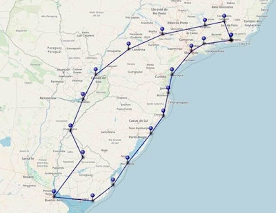 Here is our ‘dummy run’ – an inland flight from Rio de Janeiro in Brazil, via Paraguay and Uruguay, to Buenos Aires in Argentina and back along the Atlantic coast. That would be practicable if you live in the south of Brazil or if you could find a good Remote receiver there (It would be a near miracle for any of us listening in Europe - and maybe from North America as well!)