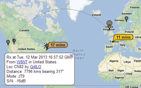 If you get the impression that I’m keen on K1JT’s new JT9-1 mode, you’d be right. This morning my signal (25W to an attic dipole) was spotted by Laurie VK3AKA in Australia – the longest distance I’ve been received using JT9-1 yet. A QSO must surely follow.