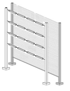 ... you can see the open-wire feeds and reflector screen. Each set of collinear elements is fed individually with open wire line. There is a support line between each two bays of driven elements.
