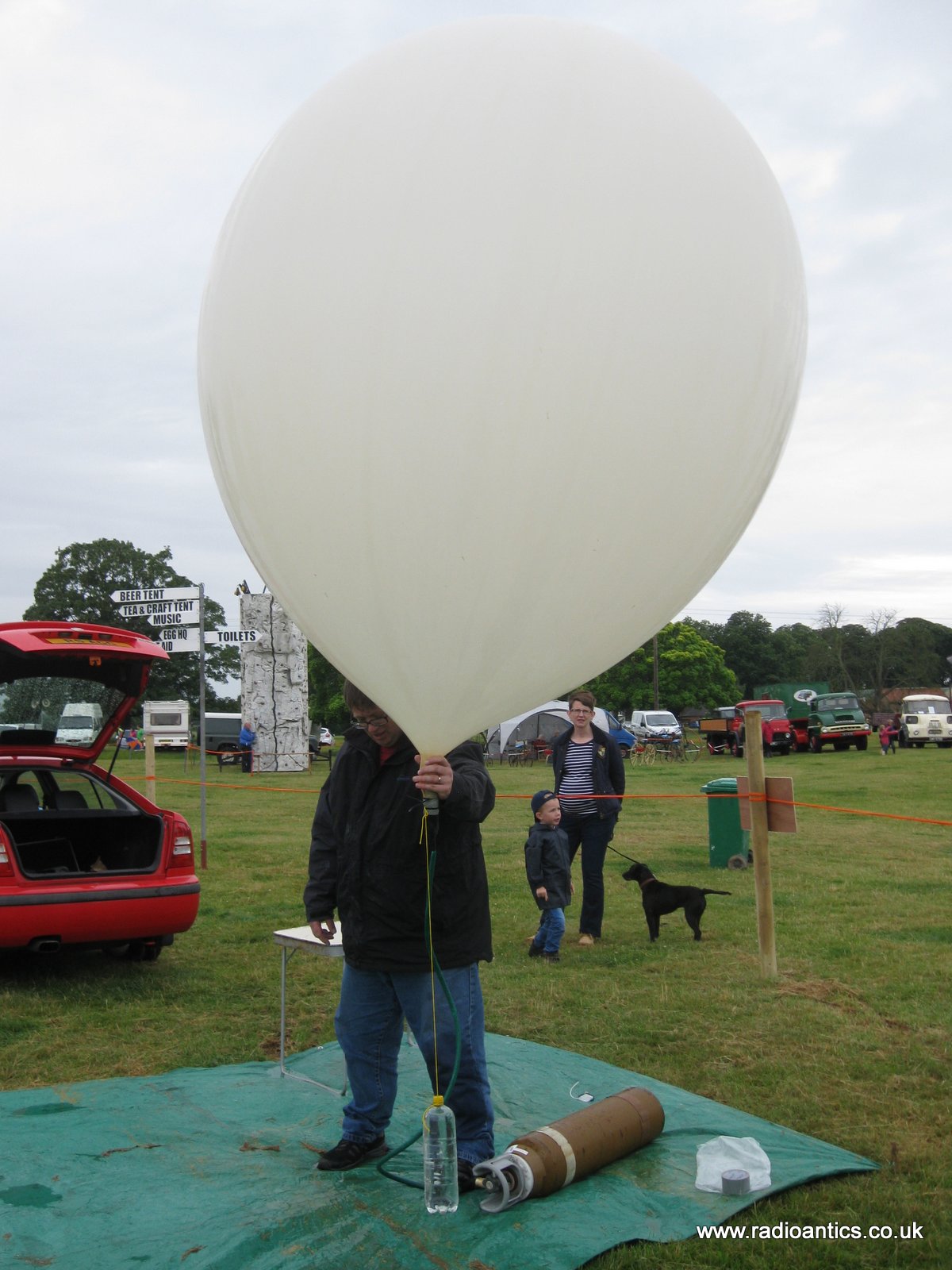 | Stewart (M0SDM) helping me tie off the balloon and payload cord |