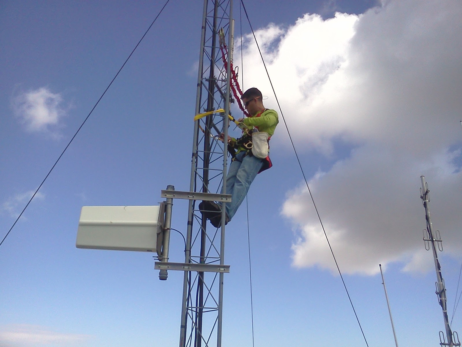 Brian took the job of tightening the D-STAR antenna, which he did adamantly, without falling, thanks to his fancy harness. It’s funny how dinky that antenna seems, but being over 3,000 ft ( 914m) above the rest of the world, it can see almost 100 radio miles (150km). With my 40w mobile radio, it comes in full signal in Socorro, NM, 75 miles (50km) away.