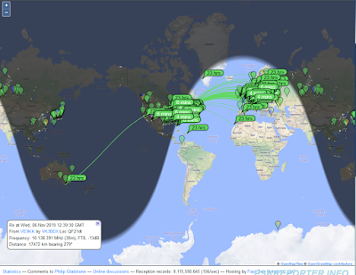 It appears that the lack of man-made noise combined with the theoretical 6db saltwater horizon gain (being realized), is enough to allow these signals to be heard. Signals continued to be decoded as darkness approached but at around 1800 local time, began to drop off ... evidently this appears to be a sunset enhancement, similar to what I often see to the east coast on the 630m band.