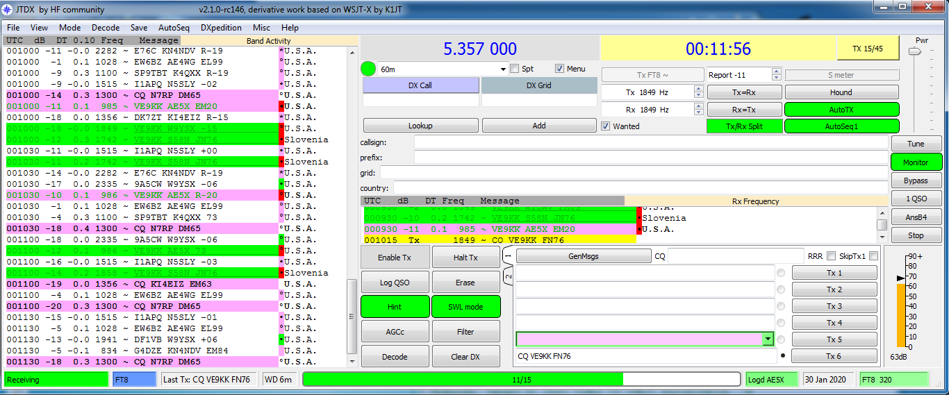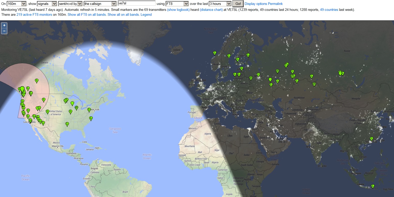 On Saturday afternoon, about ninety minutes before my local sunset here in south west British Columbia, I set my receiver and 160m half-sloper to work, along with WSJT-X, on 1840kHz USB mode.